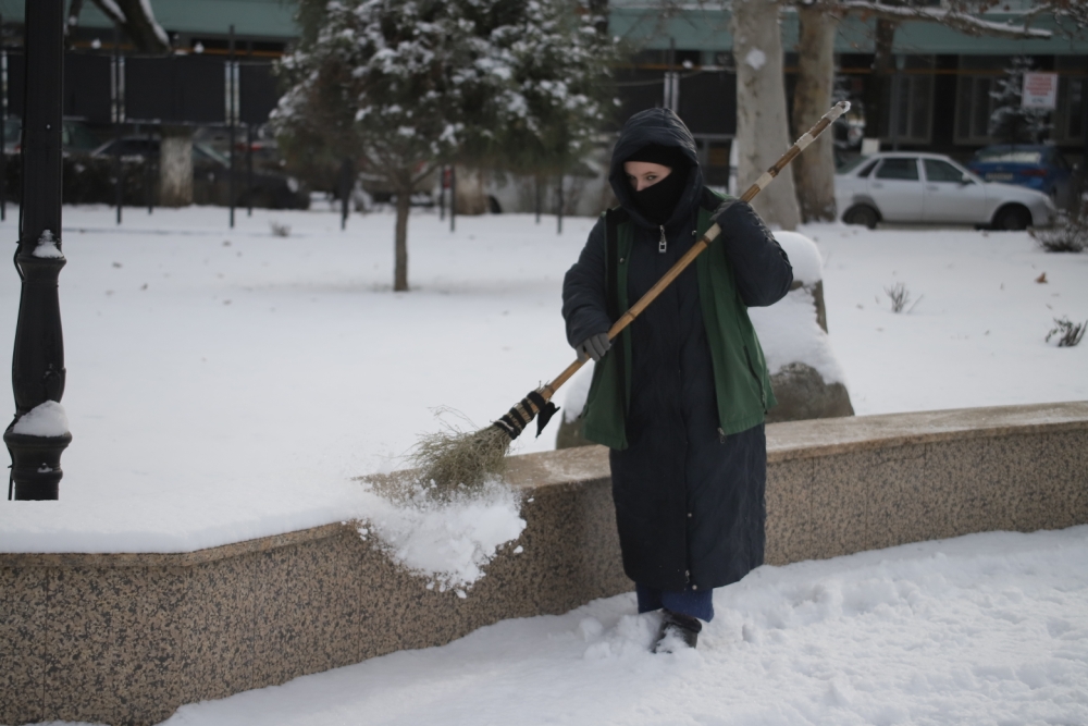 В Грозном выпал снег — нечастое для города природное явление. Белые хлопья укрыли улицы и дворы, придав столице республики по-зимнему уютный вид.