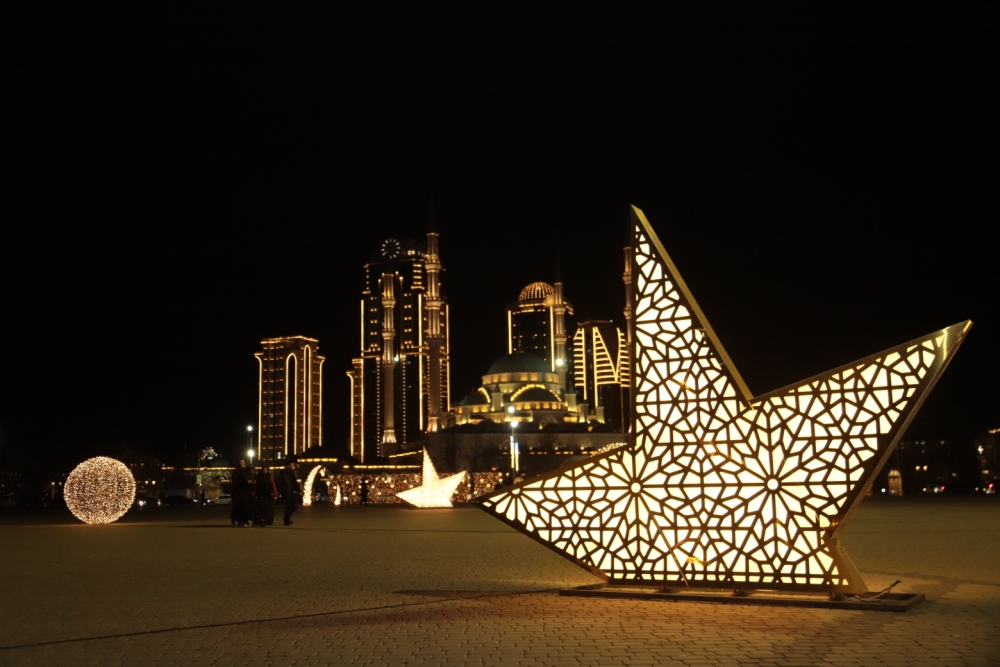 С наступлением благословенного месяца Рамадан столица Чеченской Республики — Грозный — преобразилась и наполнилась особой атмосферой духовности и света. Улицы и проспекты города украшены праздничной иллюминацией, тематическими инсталляциями и световыми композициями с исламскими символами. В вечернее время огни создают ощущение торжества и единства, подчеркивая значимость священного месяца для верующих. Город встречает Рамадан с теплом, уважением к традициям и искренней радостью.