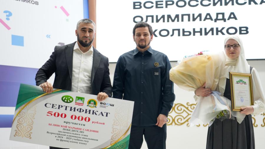Победителю ВсОШ из Грозного вручили 500 тысяч рублей, призерам — по 200 тысяч