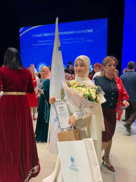 Учитель чеченского языка и литературы МБОУ «СОШ №4» города Аргуна Хеда Азматгириева одержала победу в специальной номинации Всероссийского профессионального конкурса «Лучший учитель родного языка и родной литературы».