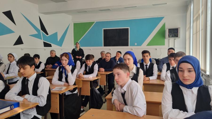 С учащимися Наурской средней школы №3 в рамках показа фильма «Путь к вершине» встретились партийцы и мастер спорта СССР, старший тренер юношеской сборной Чеченской Республики по греко-римской борьбе Рахман Гулаев, победитель Первенства Европы по греко-римской борьбе 2024 года, многократный чемпион международных юношеских турниров Инал Темирсултанов и его тренер, мастер спорта СССР Абдурашид Абдулаев. Они рассказали о своем спортивном опыте, какие препятствия преодолевают профессиональные спортсмены и влиянии здорового образа жизни на характер человека.