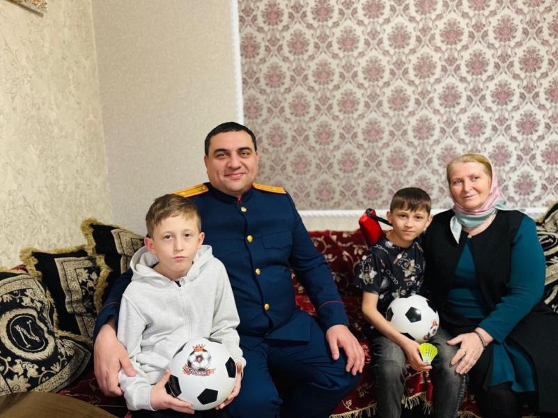 Офицер следственного управления Арби Байраков подарил Овхаду детскую радиоуправляемую машинку и футбольный мяч, что вызвало искреннюю радость мальчика. Братам достались ракетки для бадминтона, футбольные мячи, настольные игры и сладкие подарки.