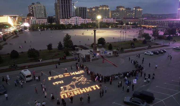 На центральной площади Грозного прошла ежегодная Международная акция «Огненные картины войны», приуроченная ко Дню памяти и скорби.