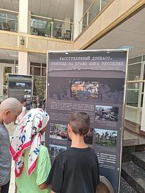Экспозиция объединила более 300 работ юных авторов: рисунки, письма, инсталляции и архивные материалы, раскрывающие подвиги российских военных, медиков и журналистов, восстановление Мариуполя и других освобождённых территорий, а также судьбы мирных жителей Донбасса.