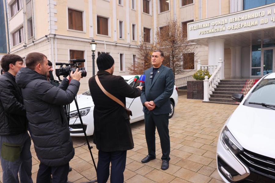 Ключи от четырех новых автомобилей «Лада Веста», приобретённых за счет средств Социального фонда, жителям передал управляющий отделением Мохмад-Эми Ахмадов.