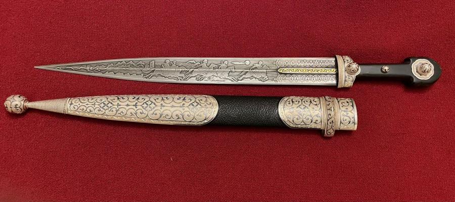 Идея создания кинжала принадлежит автору книги — Исе Асхабову, уроженцу селения Новые Атаги. Эскиз разработал художник С. Юшаев, клинок изготовлен мастером А. Уцмиговым, травление и гравировку выполнил В. Фанчулидзе, ювелирную работу — А. Гужаев.