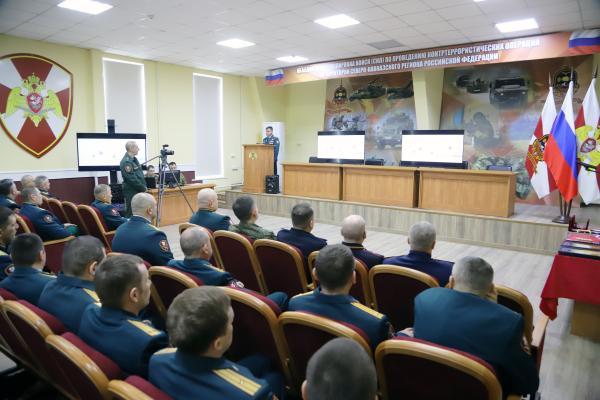 С приветственными словами к собравшимся обратились командующий ОГВ(с) и заместитель начальника ГУ МВД России по СКФО - руководитель временной оперативной группировки органов и подразделений МВД России.