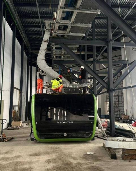 На всесезонном горном курорте Ведучи продолжается реализация одного из ключевых инфраструктурных проектов — строительства масштабной канатной дороги. На объекте уже смонтирована первая гондола.