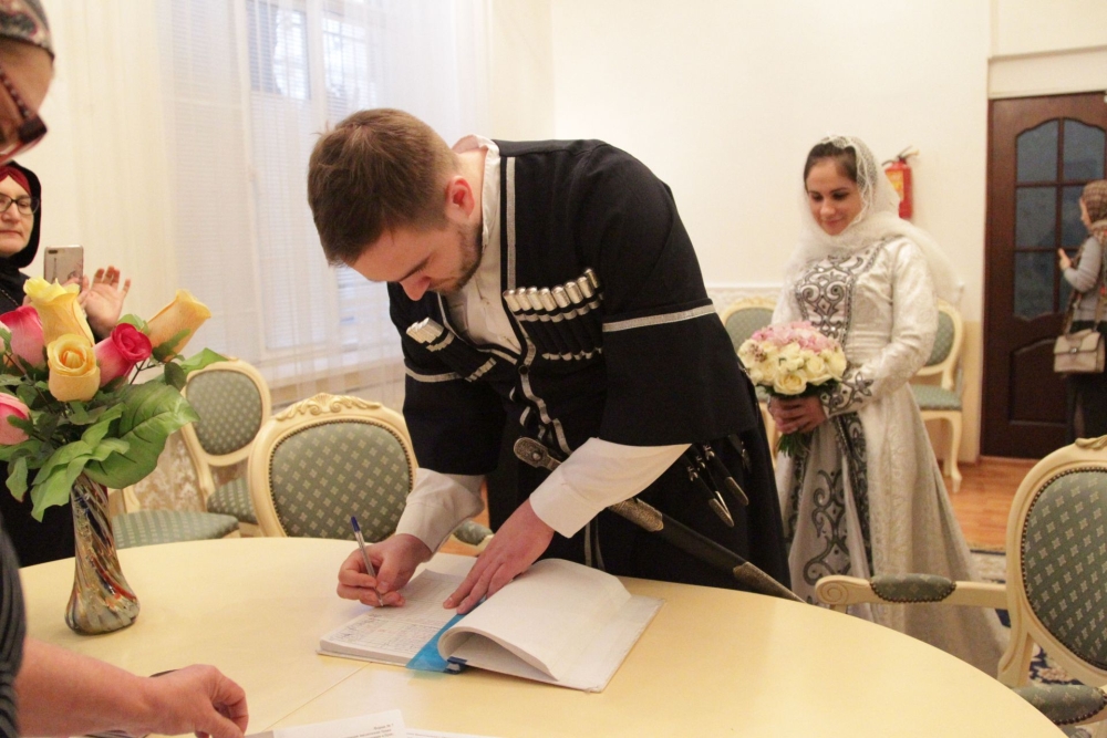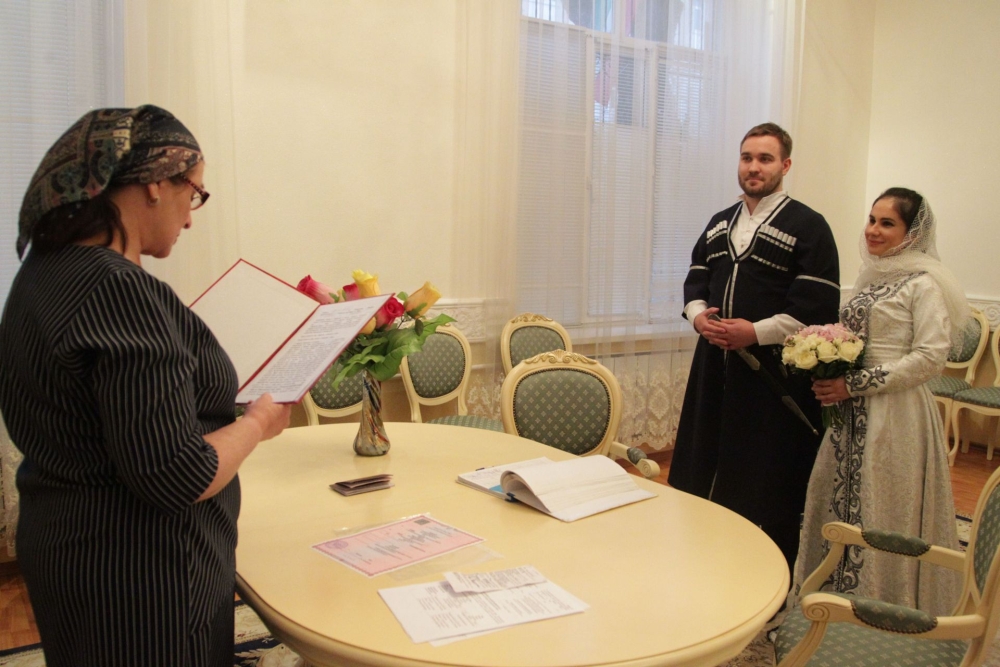 Молодая пара из Москвы узаконила свои отношения в Грозненском Дворце бракосочетаний (фото)