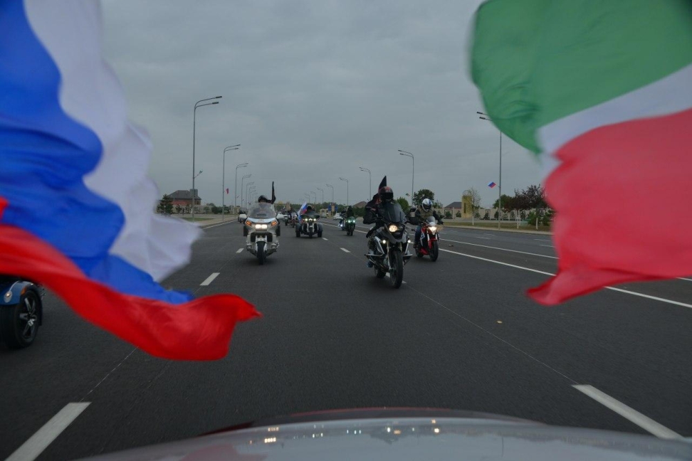 Для участия в закрытии сезона в Чеченскую Республику приехали гости из разных регионов России. Традиционно церемония началась с мотопробега, "Ночные волки" совершили поездку по маршруту Грозный-Аргун и обратно, после чего направились на место основного праздненства.