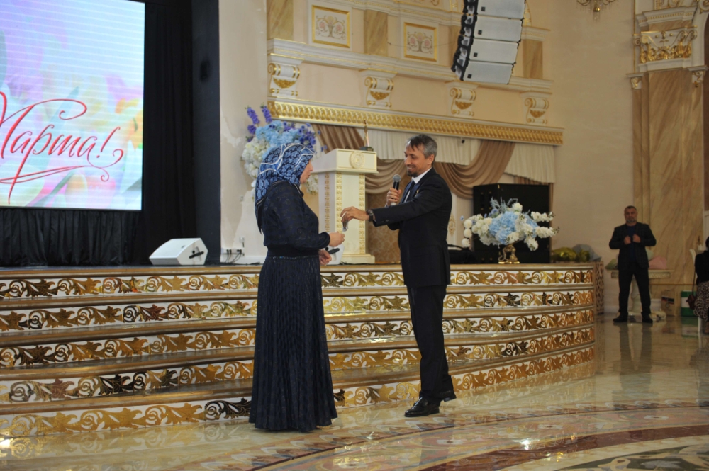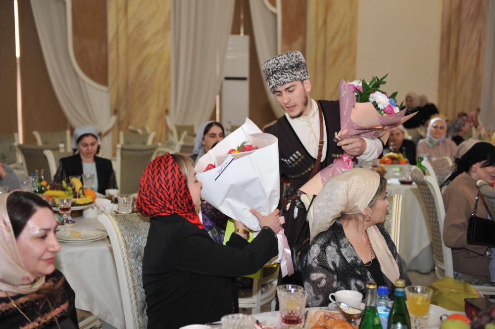 В Доме торжеств «Сафия» г. Грозного прошло торжественное мероприятие в честь женщин, работающих в системе здравоохранения Чеченской Республики. Мероприятие посетил Глава региона Рамзан Кадыров и лично поздравил собравшихся с Международным женским днем.