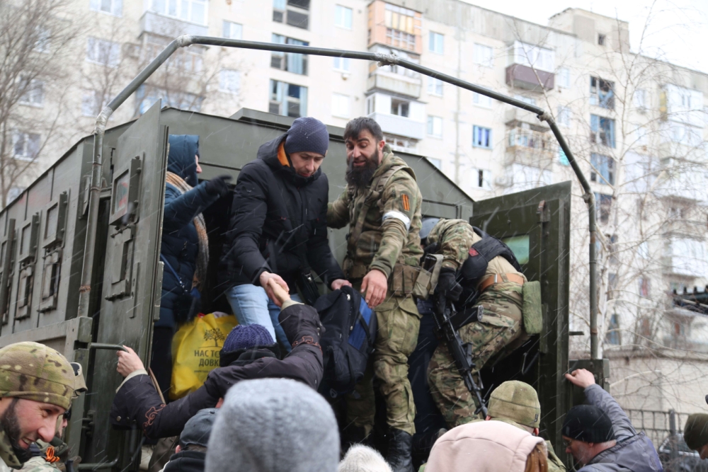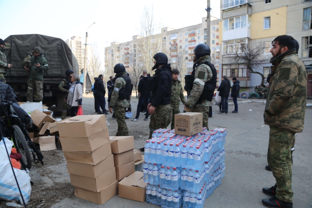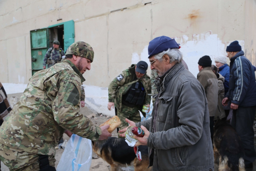 Главная » Мультимедиа » Фотогалерея » Чеченские бойцы помогают мирным жителям города Рубежное (фото)