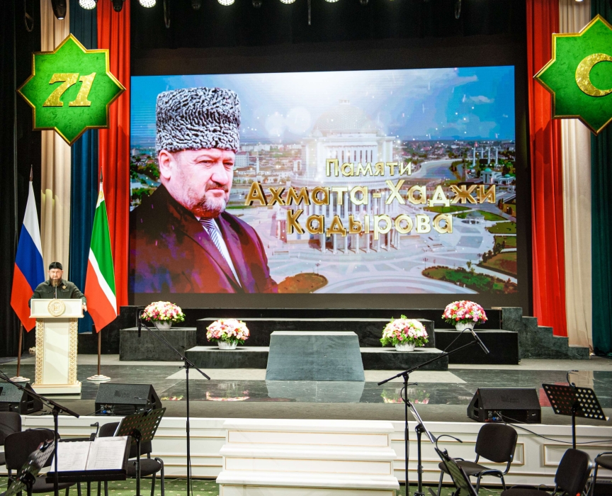 23 августа чеченский народ отмечает 71-ю годовщину со дня рождения своего выдающегося лидера, Первого Президента Чеченской Республики, Героя России Ахмата-Хаджи Кадырова. По этому поводу в грозненском Дворце торжеств имени Дагуна Омаева состоялось торжественное собрание.