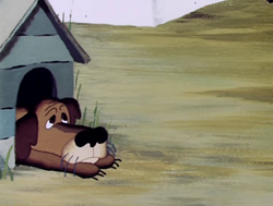 Итак, жил-был пес. Да постарел, начал караульную службу плохо нести. После того как воры ограбили дом, хозяин выгнал нерадивого охранника. Попробовал пес выжить в лесу. Проголодался. Решил поохотиться – да силы уже не те… Путь один – повеситься. Вот за подготовкой к суициду пса и застал волк – старый, умудренный жизнью, флегматичный нигилист. Поговорили два представителя отряда песьих, повыли вместе на луну… И решил волк, забыв про старые обиды, оказать собаке дружескую услугу. «Коварная» задумка состояла в том, чтобы смоделировать ситуацию киднеппинга – с последующим спасением ребенка. Сказано – сделано. Волк утащил средь бела дня ребенка бывших хозяев пса, а собака, как и договаривались, оказалась в нужное время в нужном месте, и отбила у серого хищника его беспомощную жертву. Спектакль удался на славу, собаку взяли на прежнее место, и стала она жить как прежде – даже еще лучше…