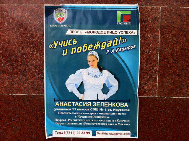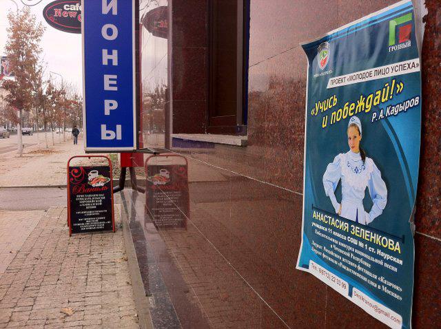 Эти постеры я запечатлил сегодня утром на проспекте Путина в центре Грозного.