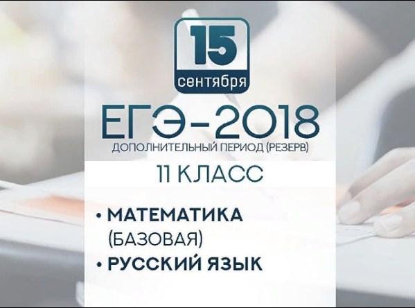Дополнительный период ЕГЭ-2018 проходил с 4 по 15 сентября. Сдать экзамены в сентябрьские сроки имели право обучающиеся, не прошедшие государственную итоговую аттестацию после 11 класса, либо получившие неудовлетворительный результат по одному или обоим обязательным предметам. Выпускники прошлых лет и выпускники, получившие аттестат о среднем общем образовании в 2017 году, желающие улучшить полученные ранее удовлетворительные результаты, к участию в ЕГЭ в сентябрьские сроки не допускаются.