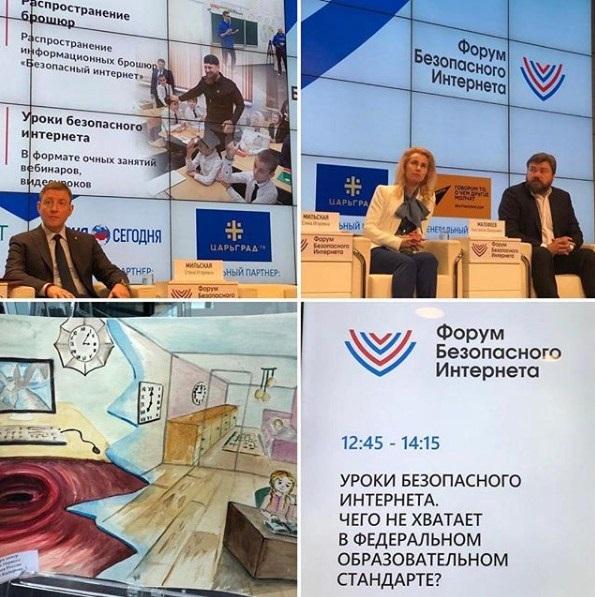 В своем выступлении председатель Попечительского совета Национального центра помощи пропавшим и пострадавшим детям Елена Игоревна Мильская отметила, что накануне в Чеченской Республике завершилась акция «Месяц безопасного Интернета в ЧР», организованная по инициативе Главы ЧР, Героя России Рамзана Кадырова. Акция проводилась с целью обеспечения информационной безопасности и повышения цифровой грамотности детей и подростков. В рамках этого проекта прошли специальные уроки и родительские собрания, конкурсы детских рисунков и эссе, направленные на защиту подрастающего поколения от отрицательного воздействия глобальной сети», - рассказал на своей странице в социальной сети Инстаграм Исмаил Байханов.