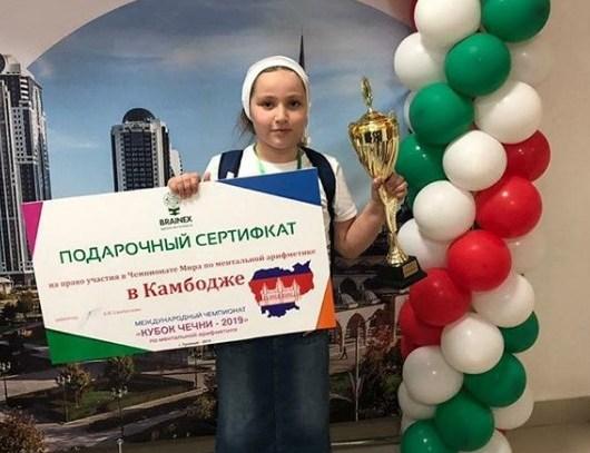 Ученица 4 класса Грозненского Президентского лицея, она же воспитанница грозненской школы интеллекта BRAINEX, Марьям Дадаева отправится на чемпионат мира по ментальной арифметике, который состоится в конце октября в Камбодже, и будет представлять там Чечню среди семи тысяч сверстников.