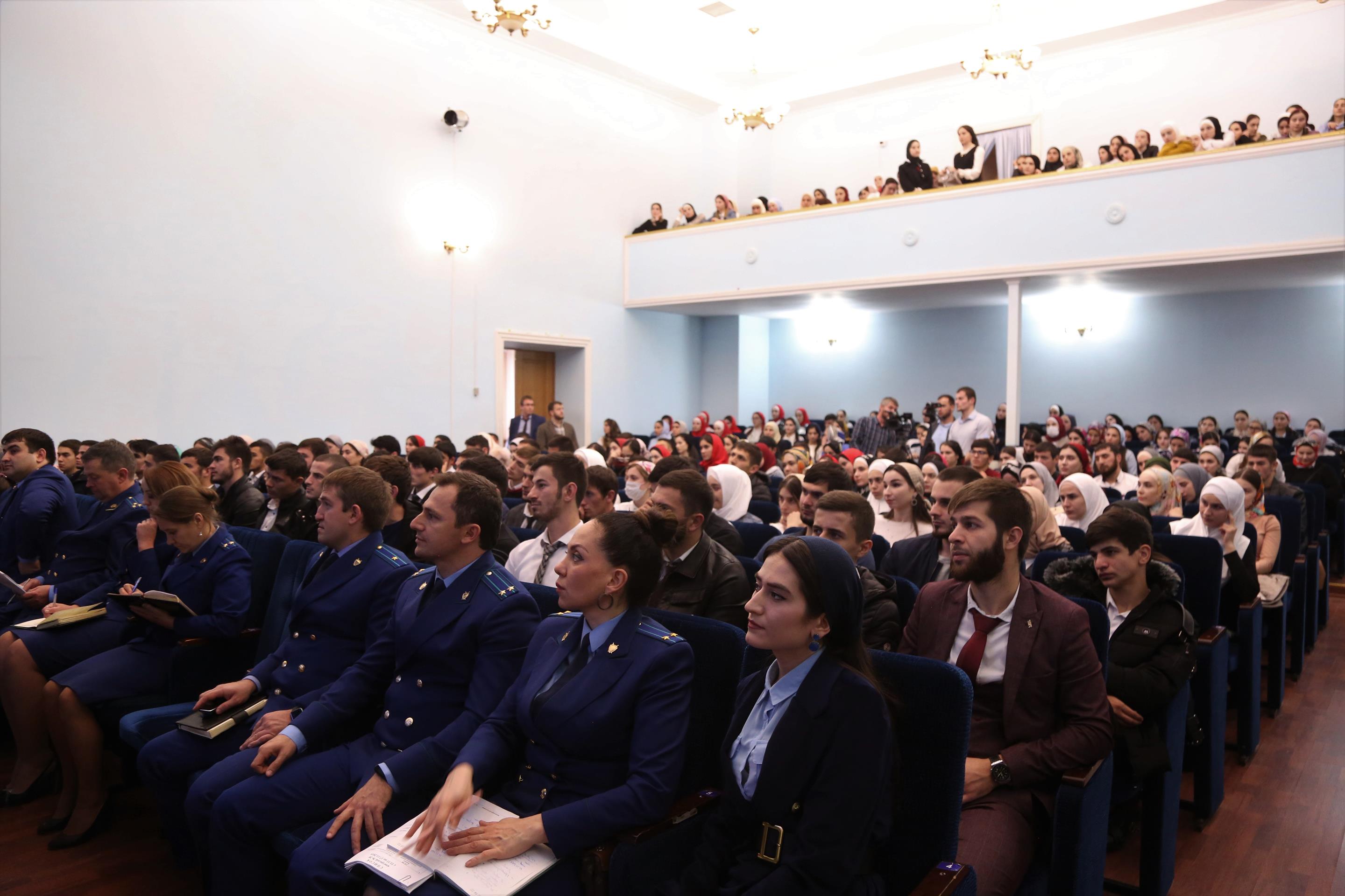 На встрече присутствовали ректор Чеченскогого государственного педагогического университета Халадов Хож-Ахмед Султанович, прокурор Чеченской Республики Абдул-Кадыров Шарпудди Муайдович, проректоры ЧГПУ Анзор Гатаев, Шавади Арсалиев, Абдулбек Вахаев, заместитель прокурора республики Максим Душин, ответственные работники аппарата прокуратуры республики и более 300 студентов, в том числе медицинского института ФГБОУ ВО «Чеченский государственный университет» и ГБПОУ «Чеченский базовый медицинский колледж».