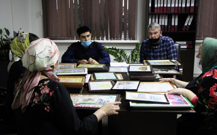 Члены жюри во главе с заместителем мэра Хаважи Хажмурадовым приступили к оценке работ. Им предстоит выбрать лучшие.