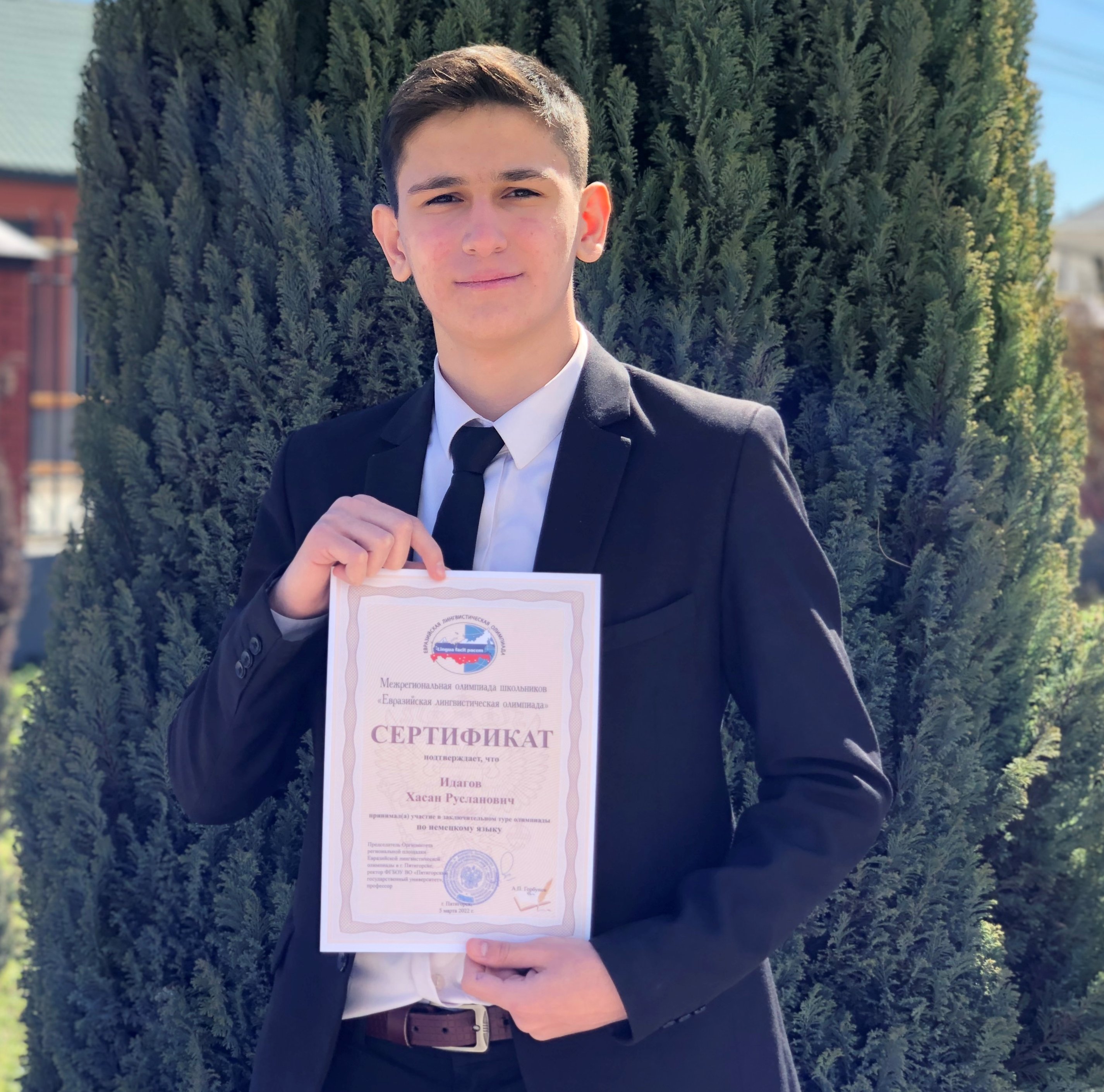 Ученик школы №2 города Урус-Мартана Хасан Идагов стал победителем Межрегиональной олимпиады школьников по немецкому языку среди девятиклассников «Евразийская лингвистическая олимпиада» 2021/2022 учебный год.