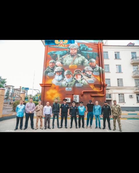 Сегодня в Грозном на улице Шейха Али Митаева состоялось открытие настенного рисунка с изображением Главы Чеченской Республики и командиров спецподразделений, участвующих в специальной военной операции на территории Украины.