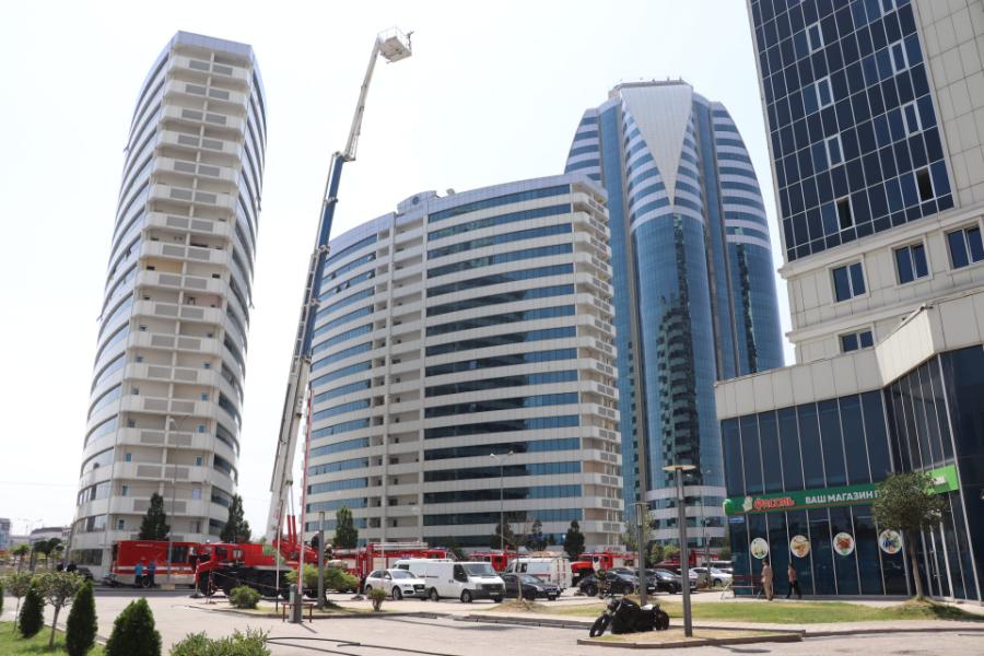 В высотном комплексе «Грозный-Сити» экстренные службы чеченской столицы провели учение по отработке порядка действий в случае возникновения пожара.