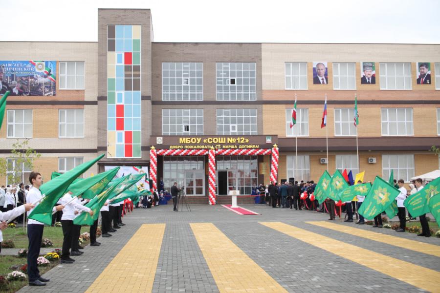 В городе Грозном состоялось торжественное открытие новой средней образовательной школы №12. Учреждение построено в рамках программы «Развитие образования Чеченской Республики». Мероприятие было приурочено к 100-летию чеченской государственности.