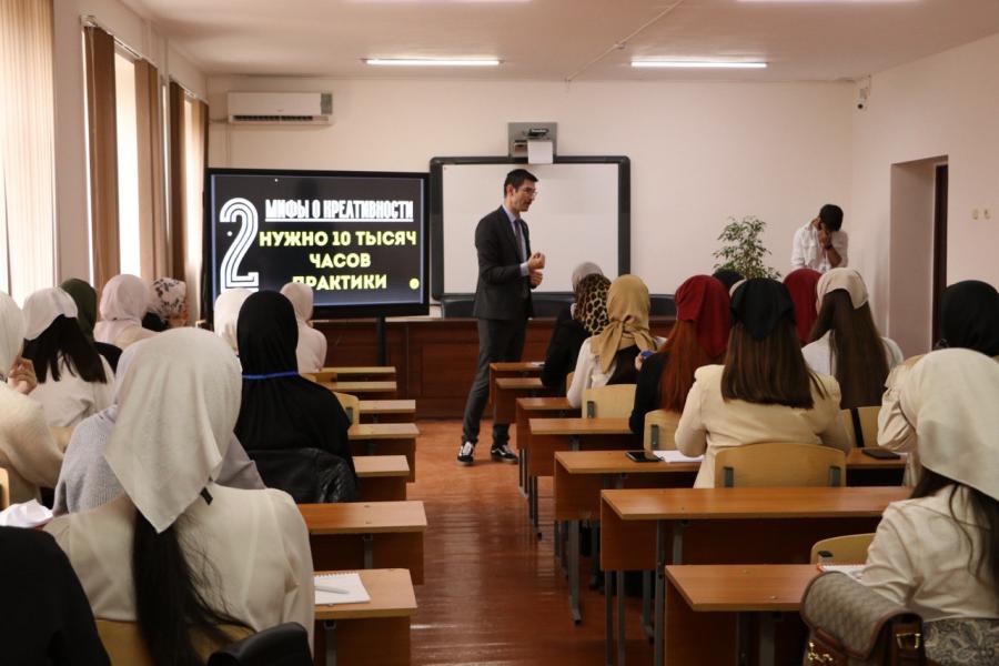 Участники мероприятия прошли регистрацию и разделились на команды. Мастер-класс для них провел абсолютный победитель Всероссийского конкурса «Учитель года России 2018» Алихан Динаев и участница педагогической мастерской Раяна Сибирова.
