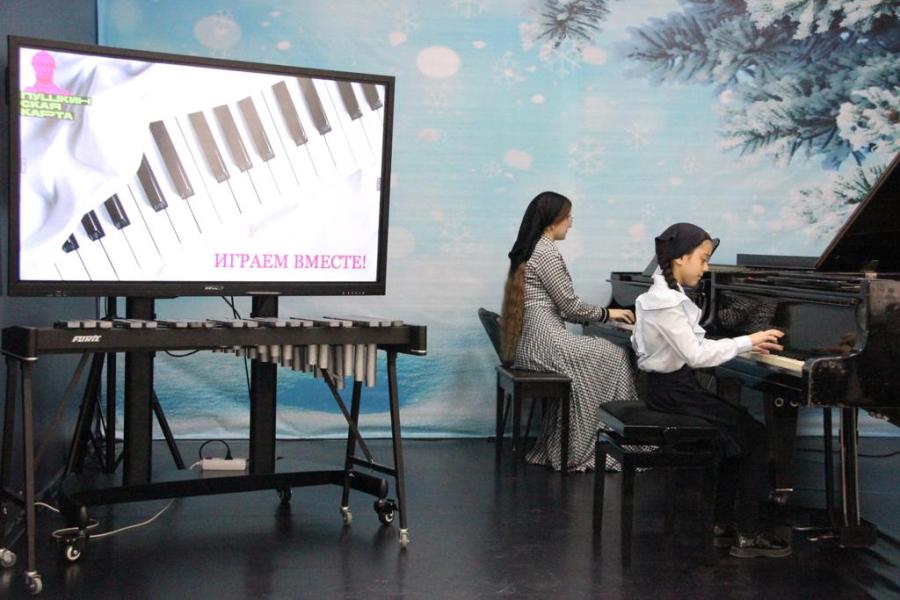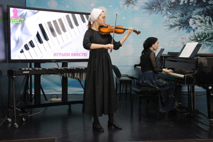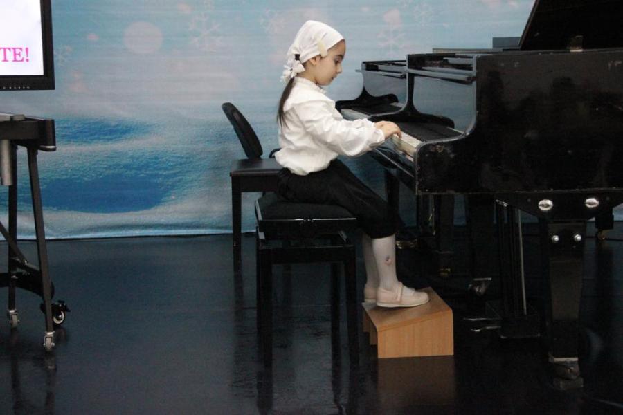 Концерт, который проходил в рамках проекта «Пушкинская карта», начался с выступления самой юной участницы - первоклассницы Алии Нуркаевой. Она вместе со своим преподавателем Еленой Юрьевной Кцоевой исполнила произведение Гайдна " Анданте".