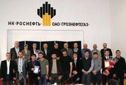 1 место: Дедиев Арби Абдулкадырович - выпускник ГГНТУ, тема доклада: «Забуривание бокового ствола в скважине № 78 месторождения «Гойт-Корт»; 2 место: Бексултанов Джабраил Магамедович - выпускник ГГНТУ, тема доклада: «Внедрение установки подготовки попутного нефтяного газа» и Ювшаев Исмаил Вайсулович – студент ГГНТУ, тема доклада: «Программное обеспечение для промышленной автоматизации».