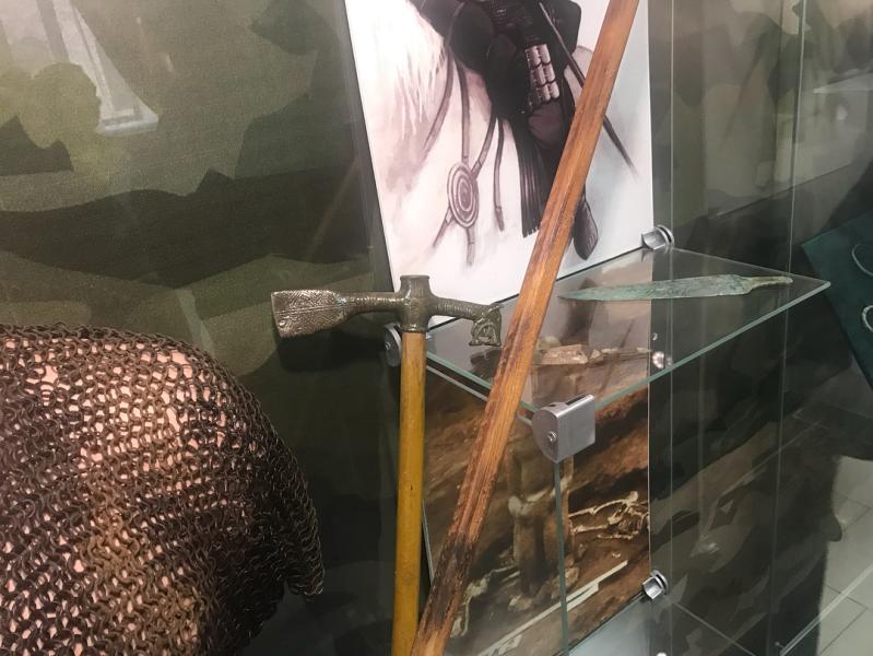 В экспозиции музея была опознана уникальная секира (бронзовый топор). С одной стороны она украшена головой яростно оскалившегося волка, являющего связующим звеном между Кобанской и Скифской археологической культурами Vl-V вв. до нашей эры. Данный артефакт был найден в 1971 году в окрестностях селения Ойсхара.