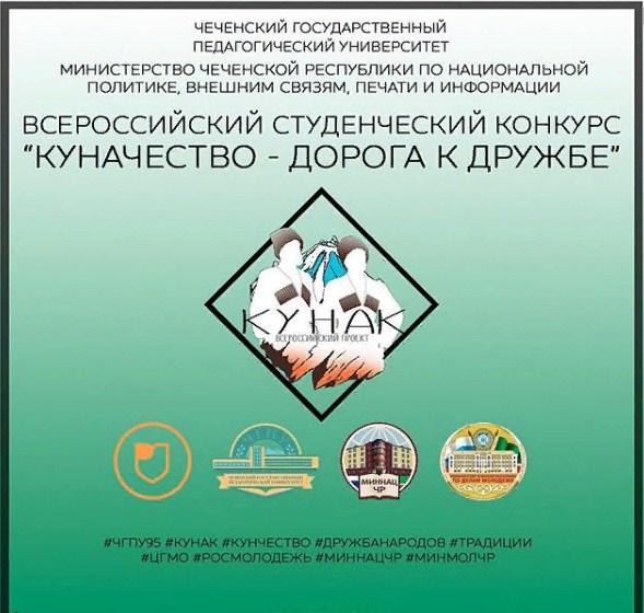 Завершился отборочный этап Всероссийского студенческого конкурса «Куначество – дорога к дружбе», проводимого Чеченским государственным педагогическим университетом совместно с министерством Чеченской Республики по национальной политике, внешним связям, печати и информации при поддержке Федерального агентства по делам молодёжи.