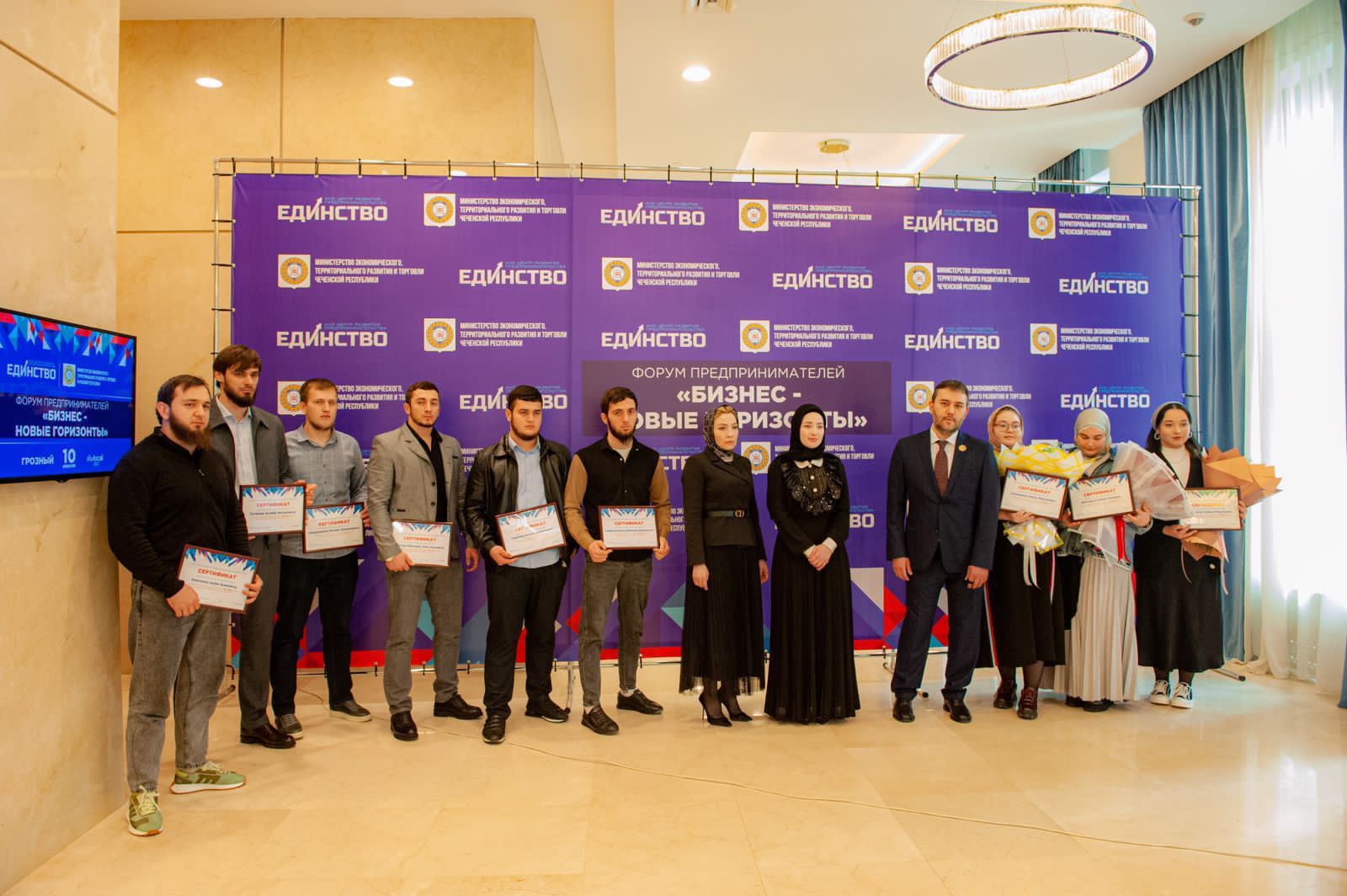 В ходе регионального форума предпринимателей Чеченской Республики «Бизнес -Новые горизонты» в рамках презентации Центра развития предпринимательства «Единство» 11 молодых предпринимателей получили сертификаты на 500 000 рублей от Фонда Кадырова для развития своего бизнеса.