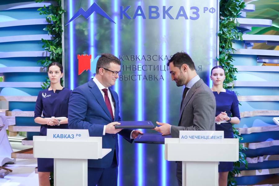 Генеральный директор Кавказ.РФ Андрей Юмшанов и генеральный директор завода «Чеченцемент» Шамхан Дудаев подписали соглашение о финансировании модернизации цементного завода. Подписание прошло в рамках первой Кавказской инвестиционной выставки в присутствии Председателя Правительства Чеченской Республики Муслима Хучиева.