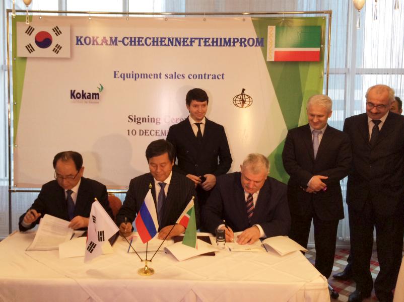 Южнокорейская компания «Кокам» и открытое акционерное общество «Чеченнефтехимпром» сегодня,10 декабря, в конференц-зале отеля «Грозный-Сити» подписали контракт о строительстве в городе Грозный завода по производству литий-ионных аккумуляторов мощностью 125,0 МВт/ч в год.