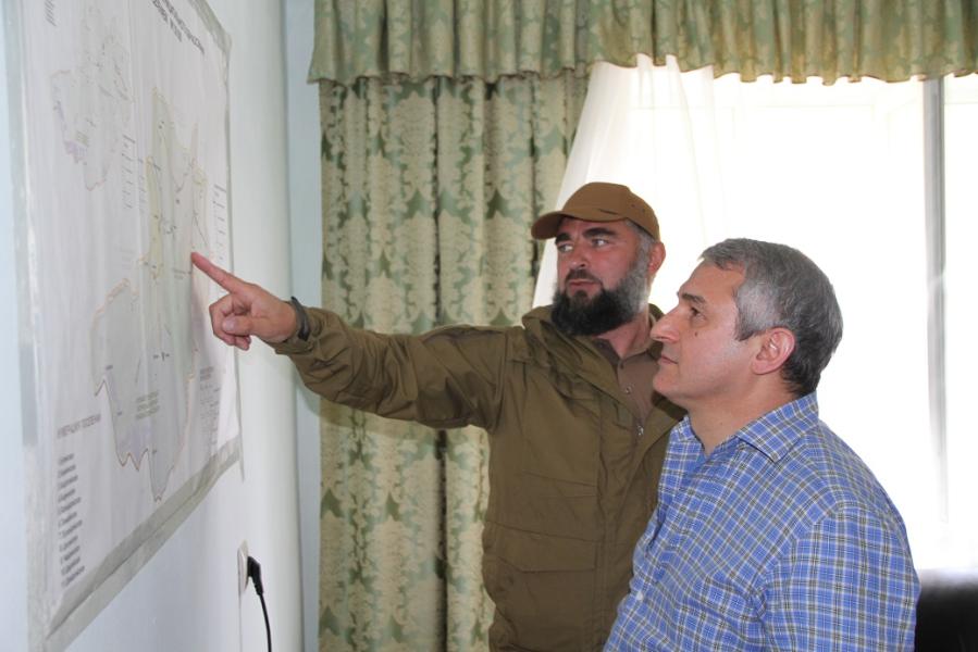 Усман Рассуханов и министр сельского хозяйства ЧР – руководитель оперативного штаба по восстановлению экономики и социальной сферы Шаройского района Муса Дадаев провели рабочую встречу.