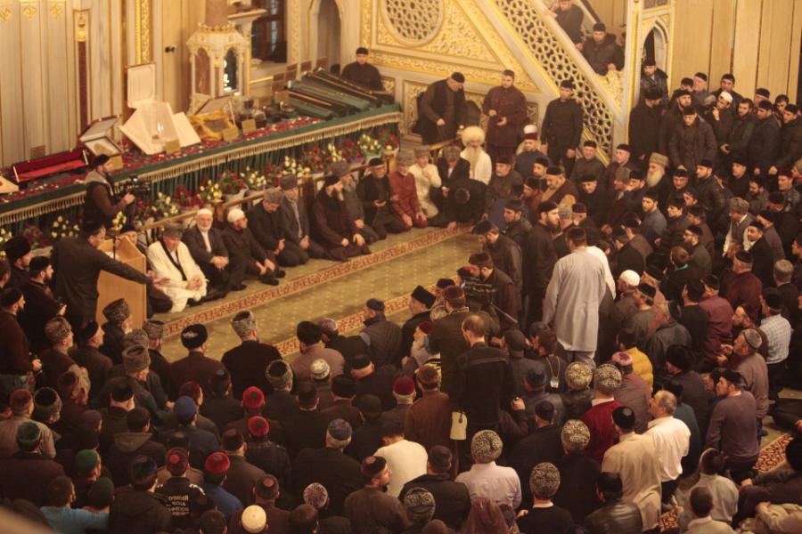 Основные торжества начались в самой мечети «Сердце Чечни», где известные представители духовенства читали проповеди, суры из Священного Корана, а также мовлид, восхваляющий Посланника Аллаха (да благословит Его Аллах и приветствует).
