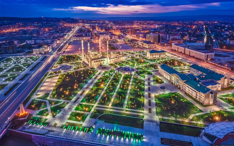 В центре - красивейшая мечеть с огромным ковром и мягким светом от витражных окон внутри, небоскребы с ночной подсветкой и цветущими садами на улицах возле них (это в ноябре-то), и тут же рядом православная церковь. На улицах дети, взрослые, все в современной европейской одежде, разве что у женщин головы прикрыты платками, чеченская и русская речь вокруг. На улицах очень мало полиции (а военных нет совсем), ощущается спокойная уверенность в мирной жизни. Глава Чечни Рамзан Кадыров запретил полиции и военным в неслужебное время ходить в форме и с оружием, именно чтобы не создавать ненужной и необоснованной тревожной атмосферы у жителей и туристов. Также отмечу, что все увиденные мной военные и полицейские (на немногочисленных постах на трассах), подтянуты, форма подогнана точно по размеру - выглядят аккуратно и достойно.