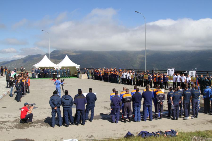 После торжественного поднятия флагов под гимны Российской Федерации и Чеченской Республики всероссийские соревнования по многоборью среди спасателей на Кубок Кавказа были объявлены открытыми.