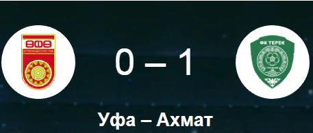 Автором единственного гола встречи стал защитник «Ахмата» Уилкер Анхель, который отправил мяч в ворота «Уфы» на 9-й минуте с подачи полузащитника грозненской команды Олега Иванова.