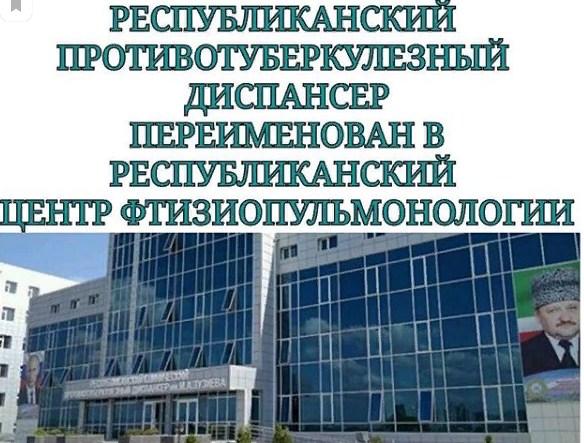 С 1 октября 2019 года Распоряжением Председателя Правительства Чеченской Республики М. М. Хучиева (№289-р от 03.09.2019 г.) Республиканский противотуберкулезный диспансер переименован в Государственное бюджетное учреждение «Республиканский центр фтизиопульмонологии» в связи с повышением уровня его материально-технического, кадрового и экономического потенциала.