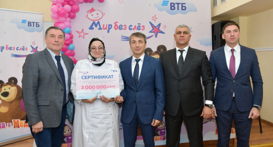 11 декабря в Детской клинической больнице №2 города Грозного прошла благотворительная акция в рамках программы «Мир без слёз». Медучреждение получило от банка ВТБ денежный сертификат на сумму 3 млн рублей. На эти средства больница приобрела наркозно-дыхательный аппарат, оптику для выполнения сложных операций, а также набор для выполнения артроскопических операций.