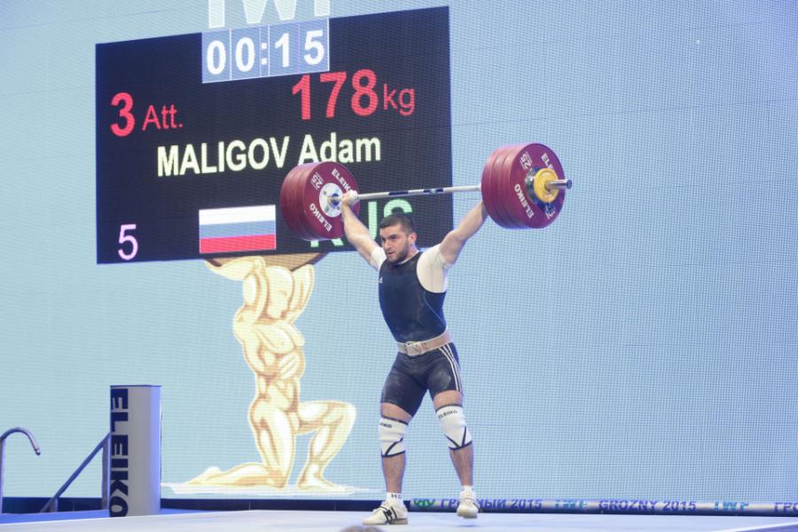 Дальше на помост вышли мужчины до 94 кг. Первое место уверенно осталось за россиянином из Чеченской Республики Адамом Малиговым, с суммой двоеборья 397 кг. Вторым стал казахстанец Денис Уланов (394), третьим – белорус Александр Венскель (380).