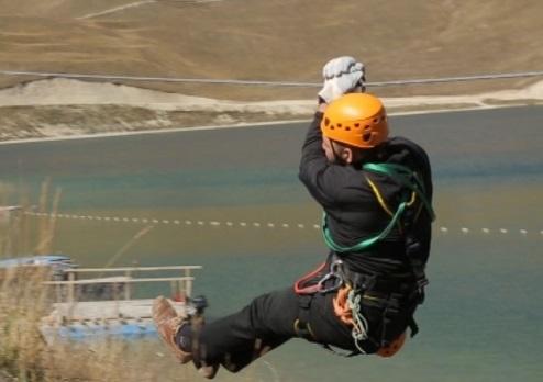 По словам председателя координационного совета по развитию туризма ЧР Юсупа Магомаева, это первый Зиплайн на Кавказе и один из самых длинных во всей России и Европе. Как сообщает ЧГТРК «Грозный», первым весь маршрут Зиплайна испытал автор проекта Руле Бругес из Голландии. Стальной трос соединяет противоположные берега озера Кезеной-Ам и способен выдержать до 15 тонн нагрузки. Так что за безопасность волноваться не стоит, говорят специалисты.