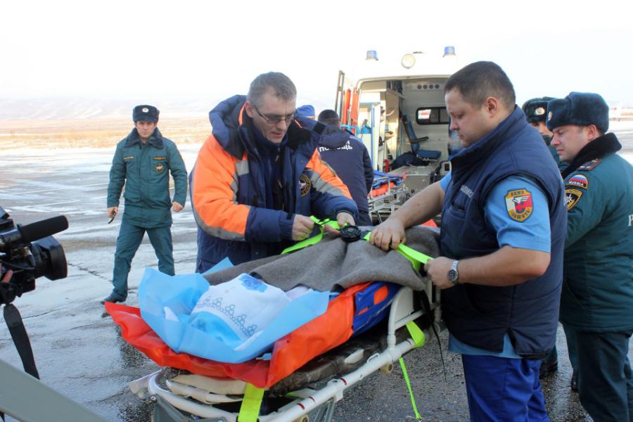 На протяжении всего полёта пациентов сопровождали медицинские специалисты Государственного центрального аэромобильного спасательного отряда «Центроспас» МЧС России и Всероссийского центра медицины катастроф «Защита» Минздрава РФ.