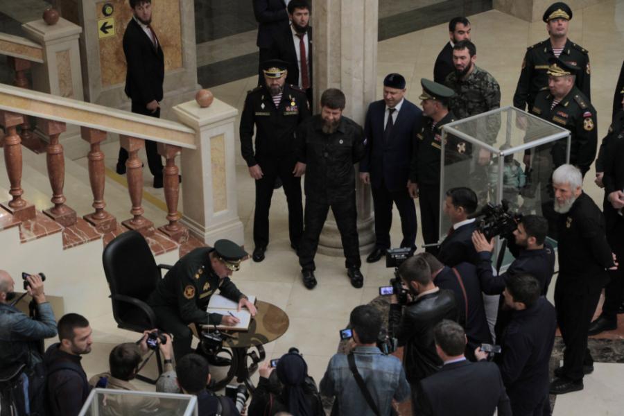 Чеченскую Республику с рабочим визитом посетил директор Федеральной службы войск Национальной гвардии РФ — главнокомандующий войсками Национальной гвардии РФ Виктор Золотов. В аэропорту г.Грозного его встретили Глава ЧР Рамзан Кадыров, члены кабинета министров, руководители территориального подразделения Росгвардии.