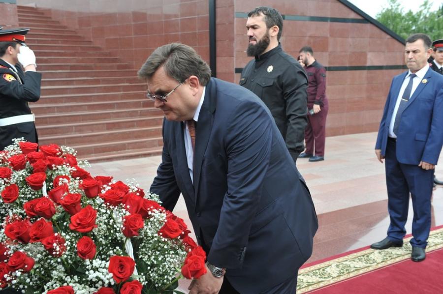 В первую очередь глава Минюста РФ посетил Мемориальный комплекс Славы имени А. А. Кадырова. Здесь состоялось возложение цветов к обелиску А.А. Кадырова, после чего для министра провели экскурсию по музею, рассказали о представленных здесь экспозициях, а также показали воссозданный рабочий кабинет Первого Президента ЧР, Героя России Ахмата-Хаджи Кадырова.