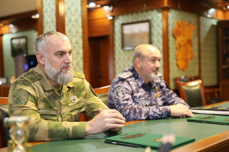 Начальник Управления Росгвардии по Чеченской Республике Шарип Делимханов провёл встречу с военным корреспондентом «КО4А TV», волонтёром МООВ «ШТОРМ» и членом команды ДУМ России Михаилом Негматовым, а также участником СВО, бывшим депутатом Смоленского городского Совета Максимом Барановым.