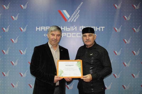 В числе общественников, получивших документ, член регионального штаба ОНФ, заслуженный эколог Чечни Абдулмадид Лулуев.